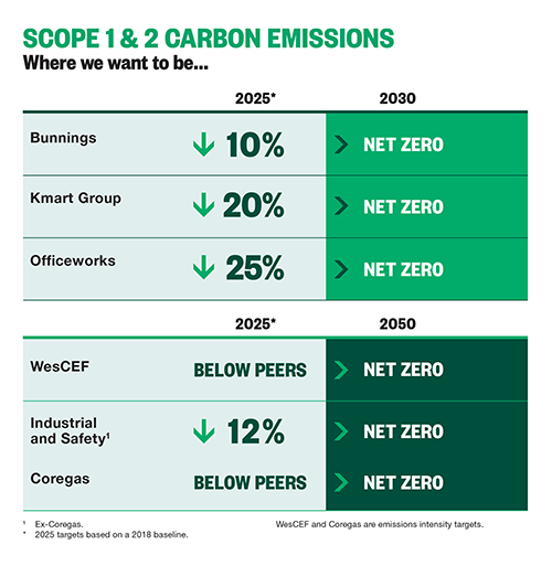 This year, Wesfarmers businesses increased and accelerated their commitments to address climate change, including new ambitions to reach net zero emissions:
